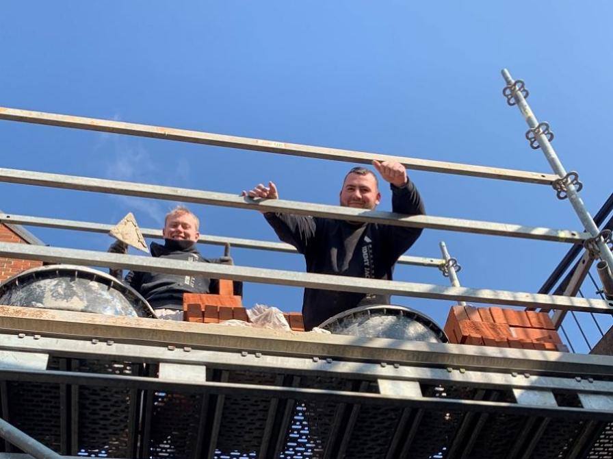 Ballerups flinkeste murere er ved at renovere trappen mellem biblioteket og Centrumgaden. Og minsandten om de ikke også lige havde tid til at mure et dejligt 3-små-grise-hus af murstensbrokkerne til Børnebibliotekaren.